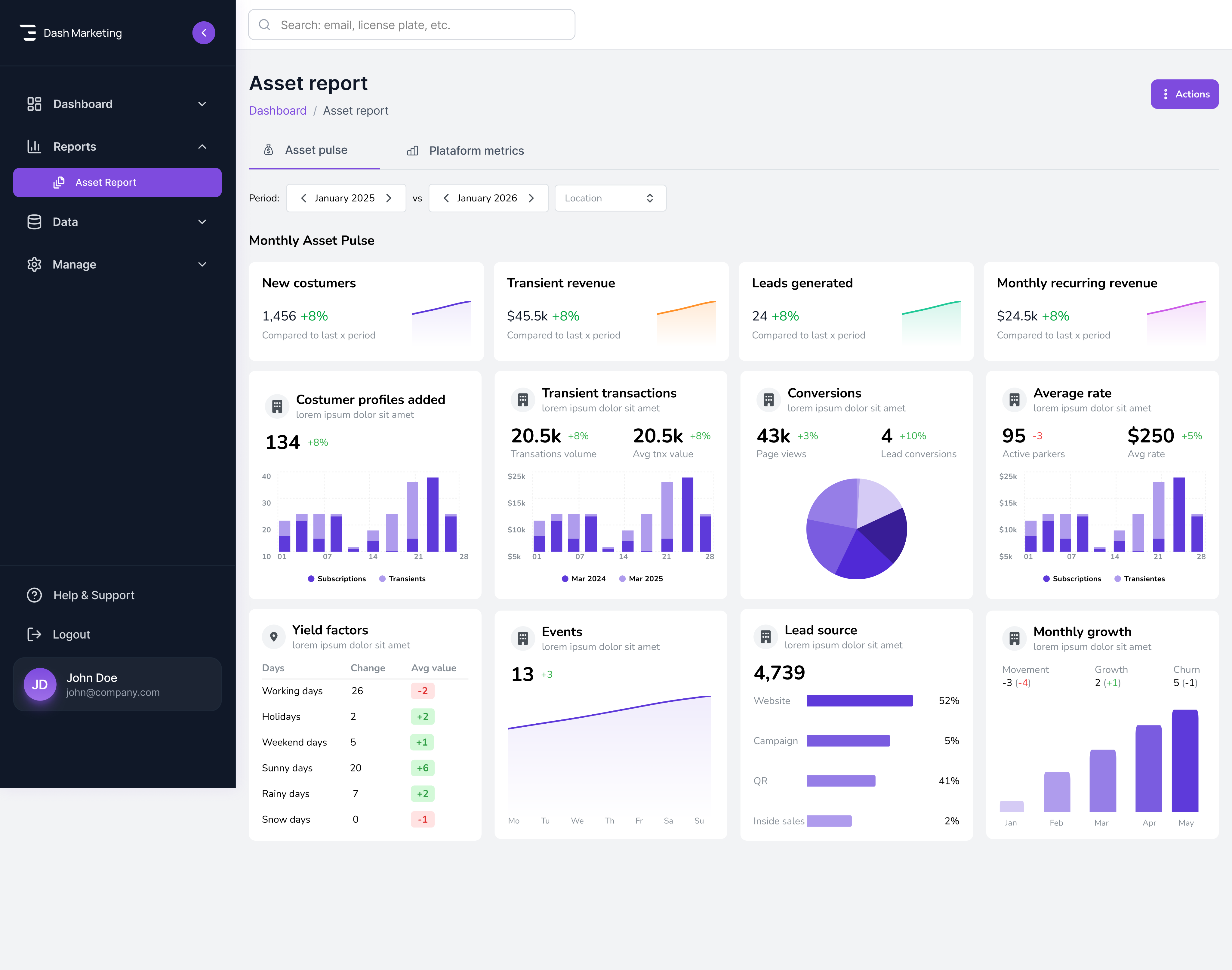 Dash is the intelligence layer for modern parking - unifying data, design, and marketing to deliver clear insights and measurable performance. We turn complex systems into actionable intelligence, powering QR-led experiences, automated reporting, and behavior-driven campaigns. Fast, adaptable, and results-focused, Dash helps operators grow with confidence.