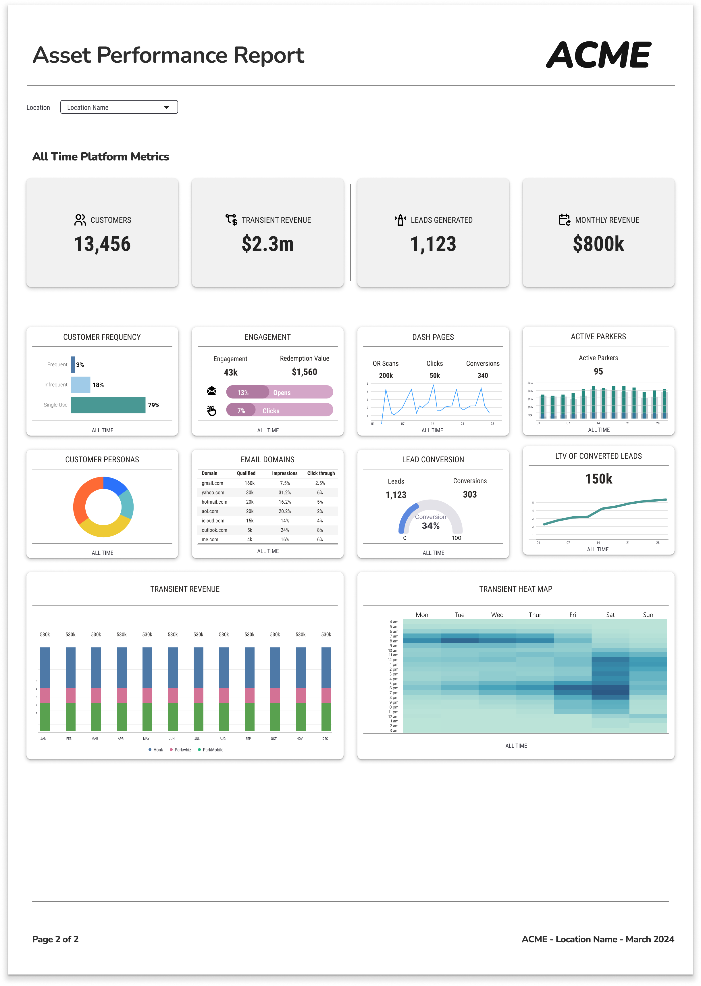 The engine behind your digital operations - built for performance, scalability, and flexibility.Dash.Core aggregates and normalizes data from multiple systems - such as PARCS, payment platforms, and digital campaigns- into a single source of truth. With customizable dashboards, real-time reporting, and API integrations, Core provides the foundation for data-driven operations, enabling teams to measure ROI, automate workflows, and unlock actionable insights.